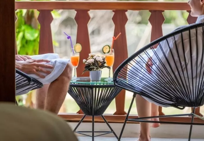 The hotel features two types of rooms: the Garden View and River View. Both room types are equipped with air conditioning, Wi-Fi, a minibar, a safety box, and a spacious bathroom with a shower and a bathtub.