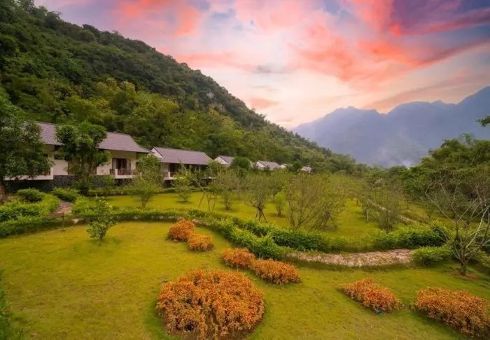 Sol Bungalows Resort is set in the tranquil, lush Mai Chau valley, surrounded by vibrant rice paddies and rolling green mountains. Here, you’ll enjoy an atmospheric base where you can immerse yourself in peaceful settings and have easy access to the valley’s charming villages and natural wonders.