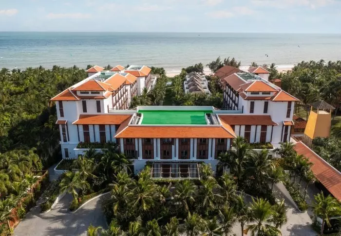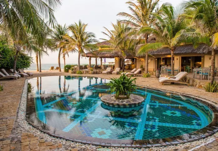 The Anam Mui Ne Hotel is located right on the beach, overlooking the glistening, azure waters of southern Vietnam. With Mui Ne’s famous sand dunes on one side and its honey-coloured, sandy beach on the other, the location couldn’t get much better.
