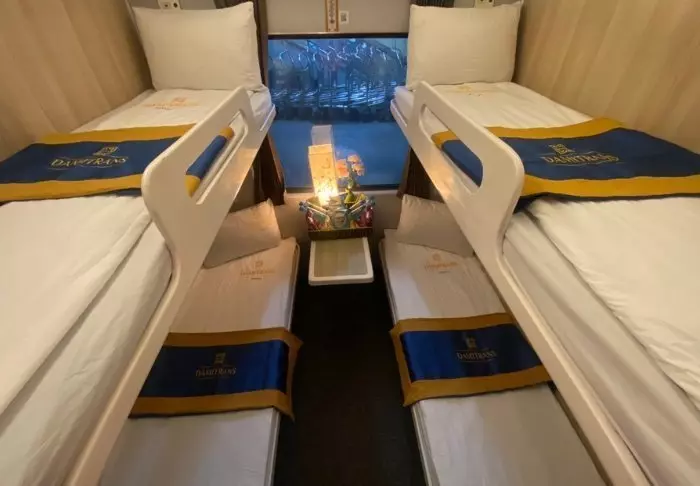 The Damitrans night train takes you from Hanoi to Da Nang. You will sleep in a shared, 4-berth sleeping car. The train will make stops at several stations on the way to Da Nang.