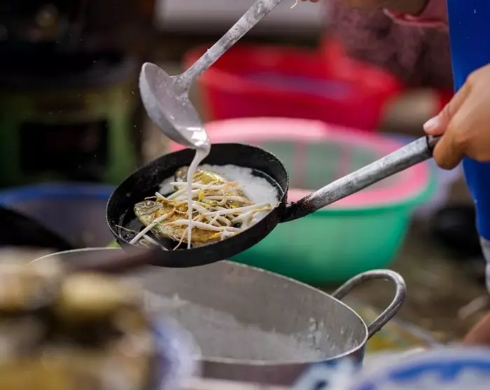 Back on the cyclo, you are conveyed along small winding streets within the walls of the citadel, where the next eatery awaits. Here, you are able to watch as the chef prepares your banh khoai, Hué’s take on a pancake. Feel free to top it yourself with fresh herbs for a wonderful gastronomic experience.