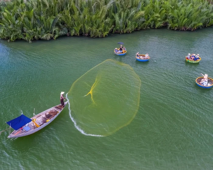 Afterwards, you’ll step aboard a traditional round bamboo boat. With help from local fishermen, try your hand at the fun art of crab fishing in the mangroves.