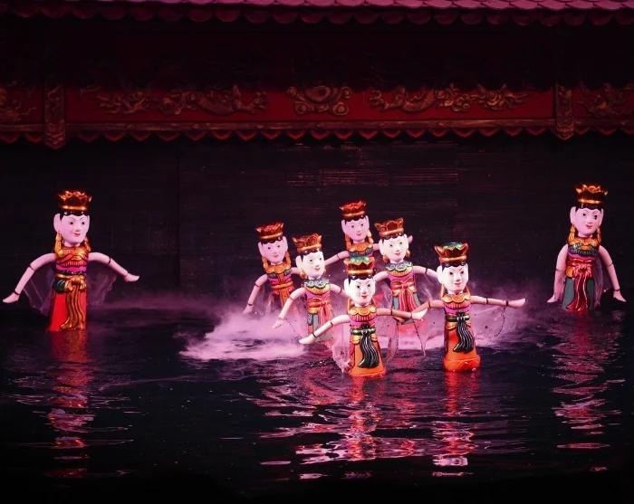 The day’s sightseeing tour concludes with a show at a water puppet theatre – a centuries-old Vietnamese tradition, where puppets dance across the water’s surface to the accompaniment of live music and classical storytelling.