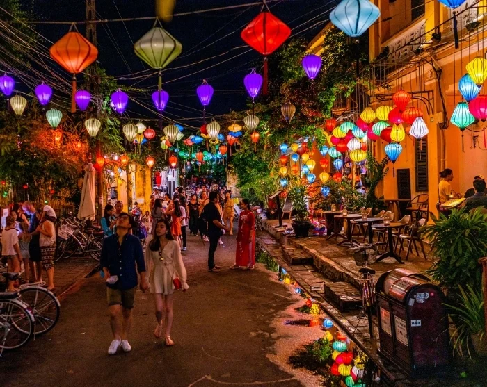 Away from the river, you’ll discover a maze of small, atmospheric streets. Here, you’re greeted by a vibrant blend of Japanese timber houses, Chinese assembly halls, French colonial buildings, and the distinctive merchant houses. Colourful lanterns hang like garlands above the streets, creating a truly special atmosphere – especially once darkness falls. Shops, street food stalls, cafés, and small restaurants dot the lanes like beads on a string, inviting you to unwind, explore, and soak up the unique character of the place.