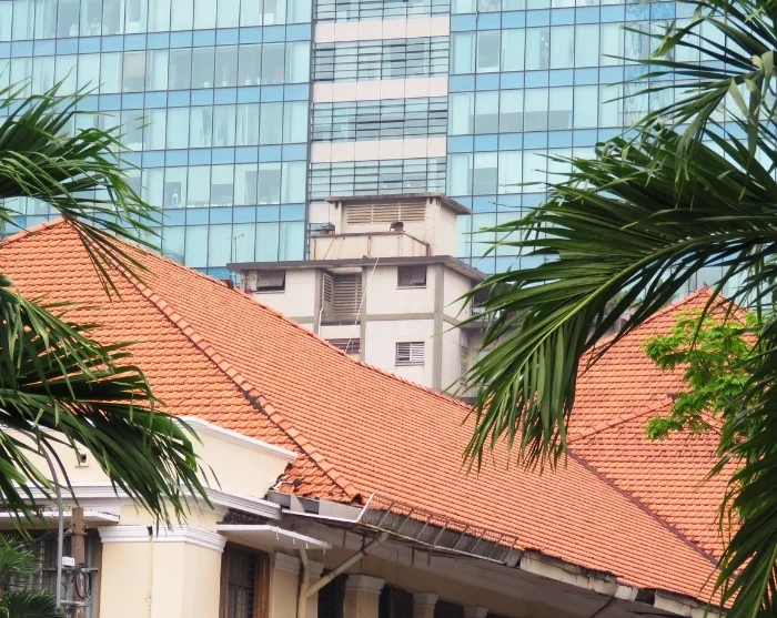 Directly opposite the Central Post Office is the iconic Notre Dame Cathedral, built between 1863 and 1880. The cathedral is an impressive relic of the French colonial era, notable for its distinctive red brick and soaring spires.