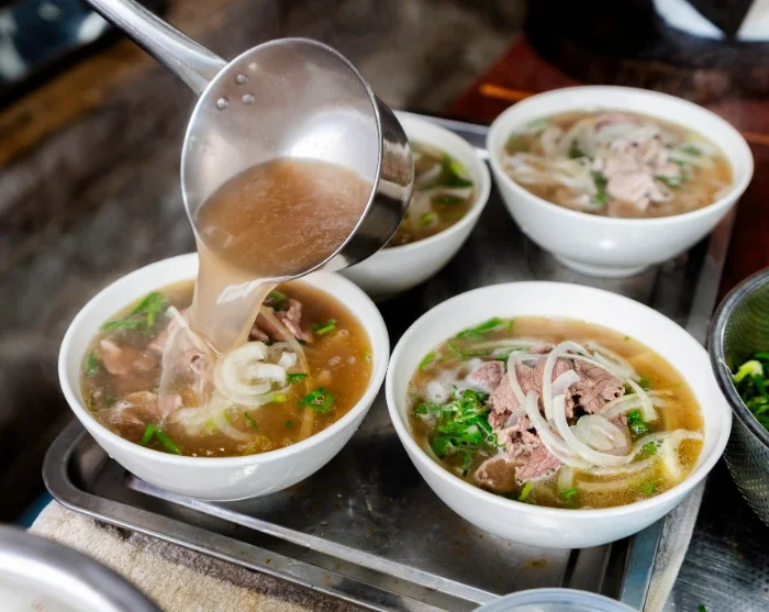 When hunger strikes, set off on a culinary adventure among Hanoi’s countless street food stalls, where you can sample traditional dishes such as pho (noodle soup), bun cha (grilled pork with rice noodles) and banh mi (Vietnamese sandwich).