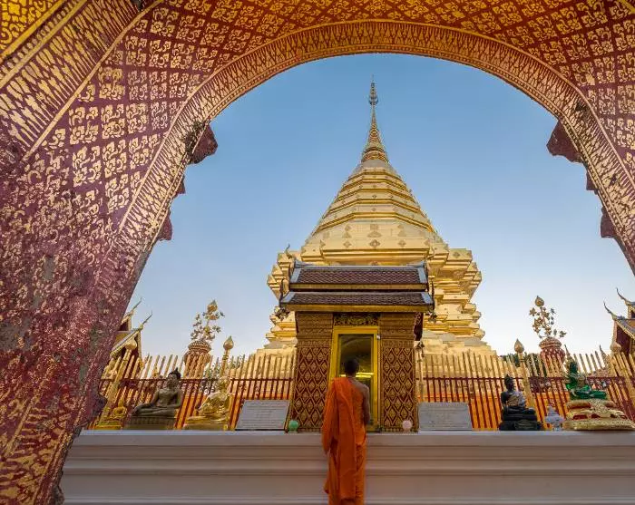 You land in Thailand’s second-largest city, Chiang Mai, which is a city rich in culture, history and picturesque landscapes. The city is located in a valley surrounded by mountains, including Doi Inthanon, the highest mountain in Thailand. Chiang Mai is also the former capital of the old Lanna kingdom, which existed from 1292 to 1775, and you will therefore find that there are many influences from this time around the city.
