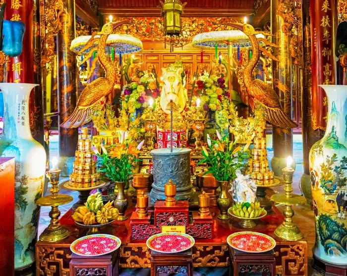 You will also stop off at the small temple Bach Ma, located in Hanoi’s Old Quarter. The temple is said to be Hanoi’s oldest, erected by Emperor Ly Thai To in honour of his white horse, who played a central role in the founding of Hanoi. The temple is known for its traditional Vietnamese architecture, with impressive wood carvings and intricate details.
