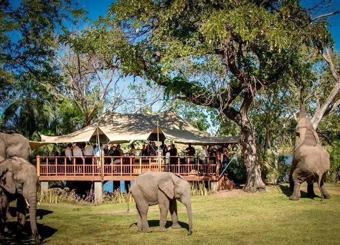 Next to the elephants – with outstanding views of the Zambezi – is a café which serves lunch (included in the price). And what a lunch it is! All the food is prepared using seasonal, local produce: fruit, herbs and vegetables, nuts, wild plums, etc. Some of the ingredients are actually the elephants’ favourite foods… The chefs here really work their magic and the food tastes like a dream! The menu consists of three courses served with wine – all included in the price.